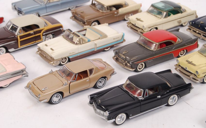 A collection of 16x Franklin Mint and Collectors Classics (8x of each make) precision 1:43 scale diecast model cars. All American classic cars. Unboxed, but all appear very near mint or mint. Good assortment.