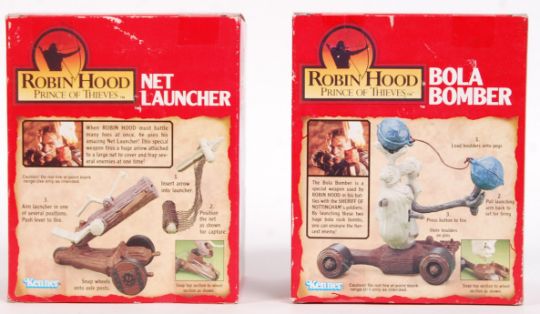 Two vintage Kenner made Robin Hood Prince Of Thieves factory sealed unused playsets; Net Launcher and Bola Bomber. Both sealed, unused.