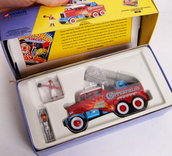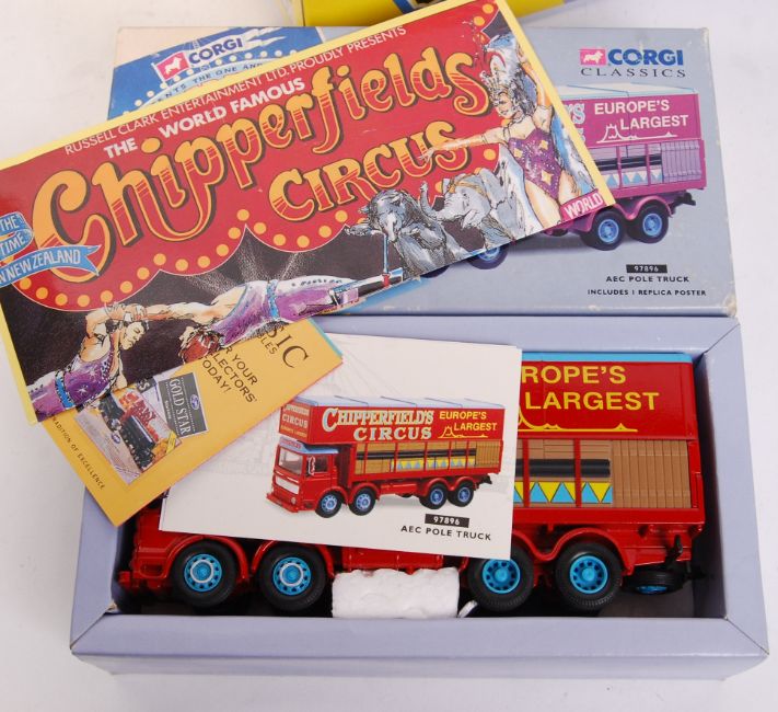 A collection of 7x Corgi Chipperfields Circus diecast model sets. To include; 97896, 97889, 17801 (x2), 06601, 96905 and ' Six Circus Figures No. 2 .' All appear complete, with all contents mint. Certificates present.