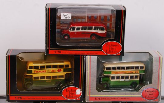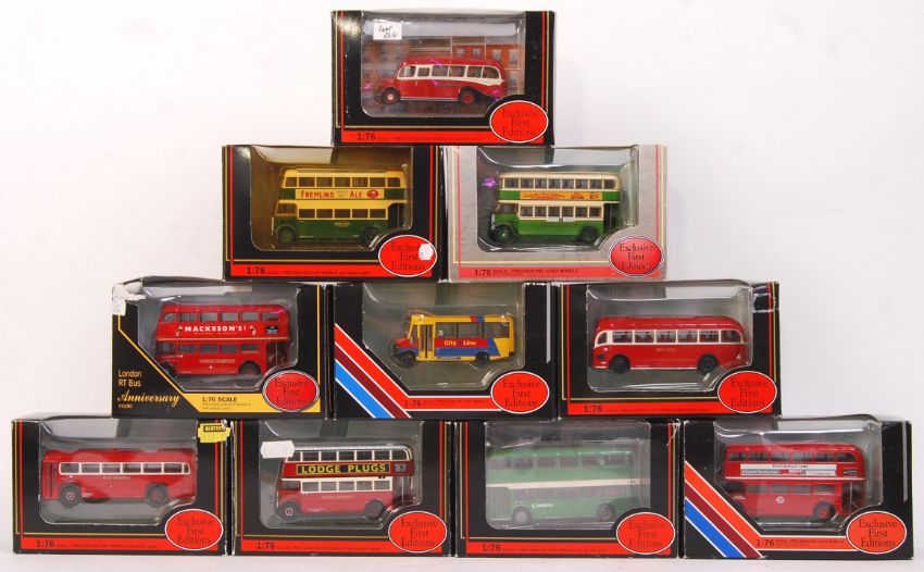 A collection of 10x assorted EFE Exclusive First Editions diecast model 1:76 scale buses. All appear mint, within the original boxes. To include; 15624, 20302, 16405, 27807, 23312, 24804 and others.