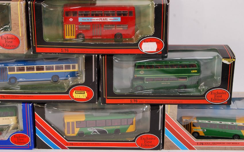 A collection of 10x assorted EFE Exclusive First Editions diecast model 1:76 scale buses. All appear mint, within the original boxes. To include; 29602, 25701, 25605, 25709, 20602 and others.