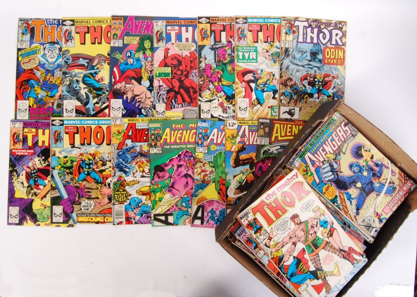 A large collection of assorted vintage 1980's Marvel comics. All appear Avengers / Thor related, to include; The Avengers, Mighty Thor, The Might Avengers etc. Comprising of the following issues;