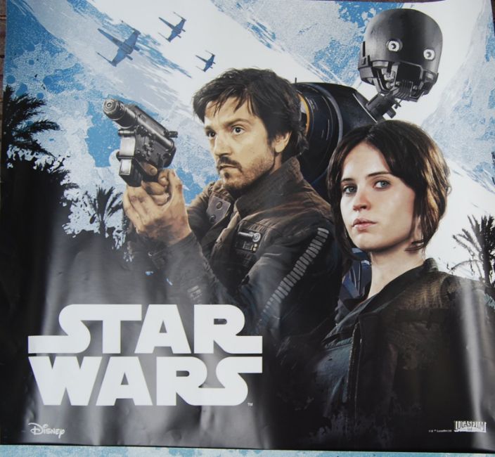 An original Star Wars supermarket promotional poster & shelf talker. Poster measures approx 95cm wide. Shelf talker measures approx 100cm long.