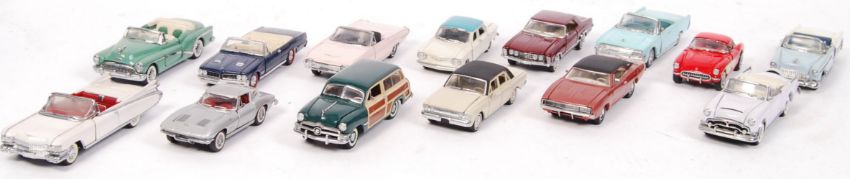 A collection of 14x Franklin Mint 1:43 scale precision diecast model cars. All unboxed, but all appearing mint / mint+ and only ever displayed. To include mostly American cars. Highly detailed.
