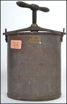 A 19th century tongue press of tin brass and cast metal construction having a screw twist press to op and copper makers plaque for Cross Bros Iron Mongers of Cardiff. Measures 27 cm high, 16 cm wide and 19 cm deep.