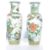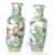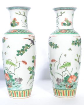 A pair of late 19th / early 20th century Guangxu Oriental Chinese ceramic famille verte vases having a white ground decorated with phoenixes, birds and foliage with concentric blue circle marks to base. Measures 31cms high.