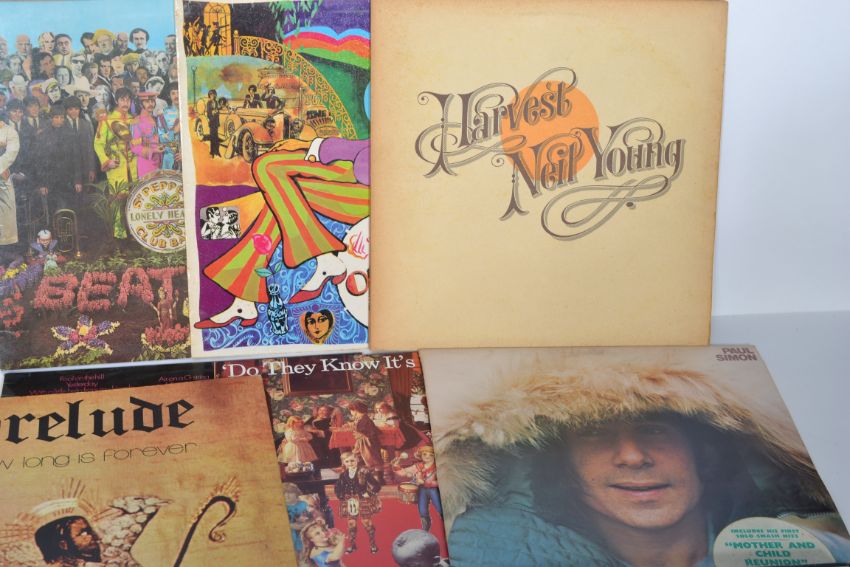 A collection of Long Play LP vinyl records by several artists to include Headline, Moulin Rouge ( still sealed ), Stepmothers, Bread, Don McLean x 5, The Sandpipers ( multiple ), Prelude x 2, Lindisfarne, Neil Young, The Beatles, Bob Dylan, Joan Baez, Donovan, Carole king etc.