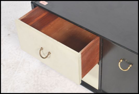 A vintage 20th century Ernest Gomme / G-Plan monochromatic coffee table, 2 drawers having a drop down cabinet. Measures: 40cm high x 92cm wide x 46cm deep.