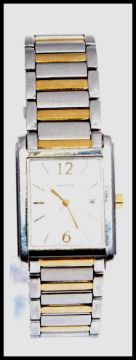 Citizen Eco-Drive rectangular bi-colour stainless steel gentleman's bracelet watch, rectangular white dial with baton markers, bi-colour bracelet, quartz