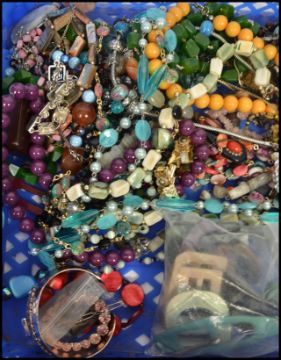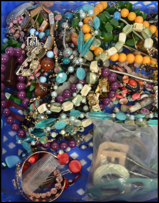 A collection of vintage 20th century costume dress jewellery to include various vintage belt buckles, necklaces, bracelets, silver jewellery, silver bangle etc.