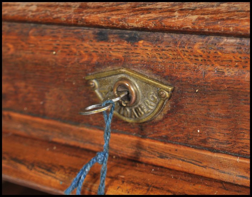 A 1920s oak kneehole twin pedestal roll top desk, the S shaped tambour roll enclosing a fitted interior over twin pedestals, each fitted with three drawers