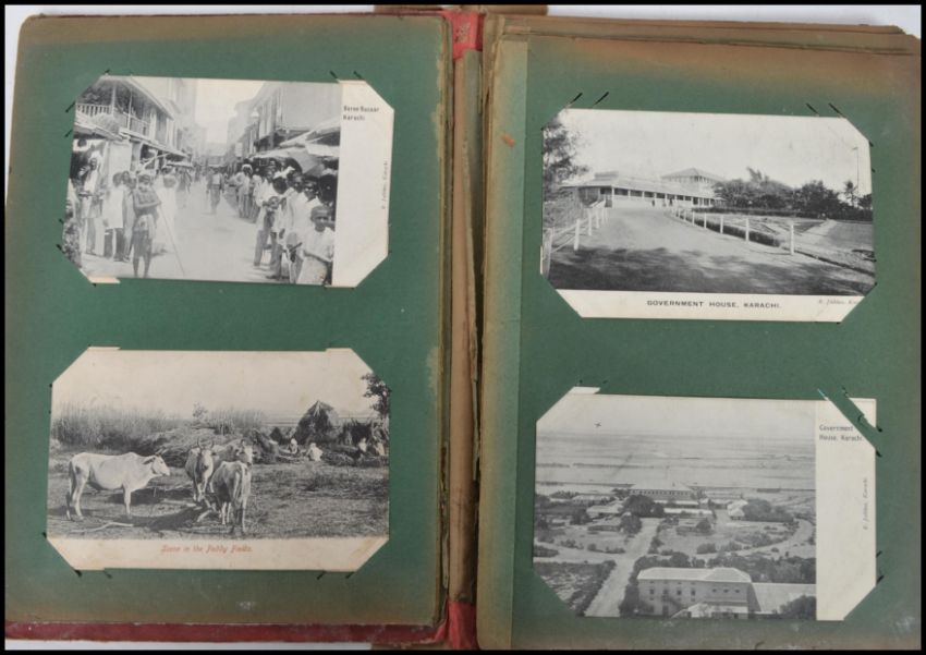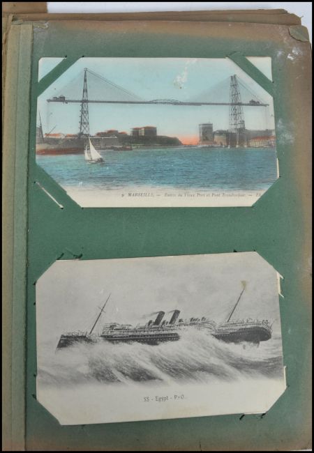 An Edwardian postcard album containing postcards from the early 20th century with views from Egypt, India and Europe etc. Some loose.