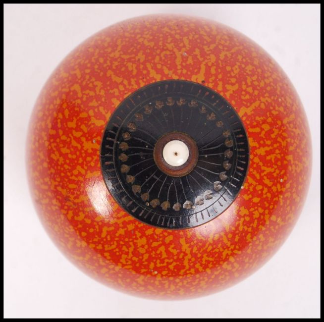 A 20th century Indian painted turned wood set of dome topped boxes having a bead finials atop. Measures 7 cm high and 8.5 cm (largest).