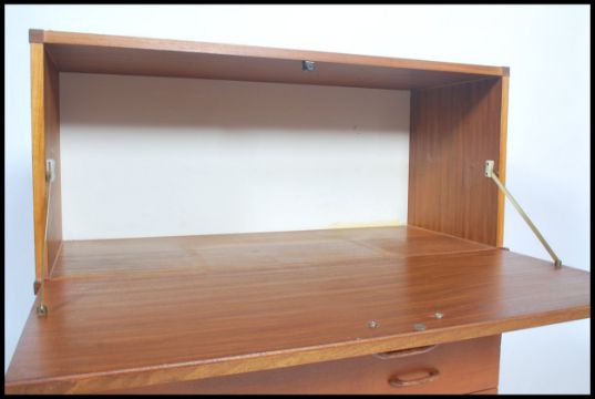 A retro teak wood ladderax style cabinet raised on castors together with another modular part, possibly ladderax / avalon ( lacking uprights ). Measures 88 x 92 x 44.