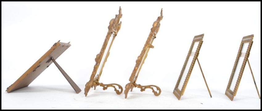 A group of 19th century Victorian picture frame having easel backs to include a pair of curb link framed examples an Art Nouveau pair and another. Highest measures 28 cm and widest measures 21 cm.