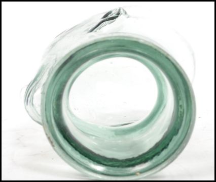 A 20th century moulded pressed glass phrenology type head - shop display stand / millinery mannequin head. Moulded and pressed glass of clear colour with moulded features. Measures 29 cm high.