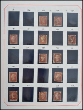 Postal History - Penny Red Stamps, a Stanley Gibbons SG 43/44 stamp album containing approx 82 Victorian Penny Red stamps. Album measures 30 cm high and 26 cm wide.