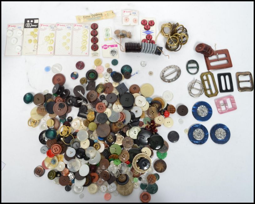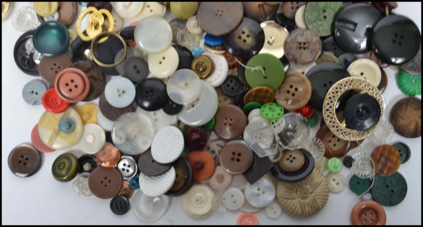A collection of vintage and retro 20th century buttons to include military examples, some carded etc please see images. Tin measures 17 cm high, 12 cm wide and 9 cm deep.