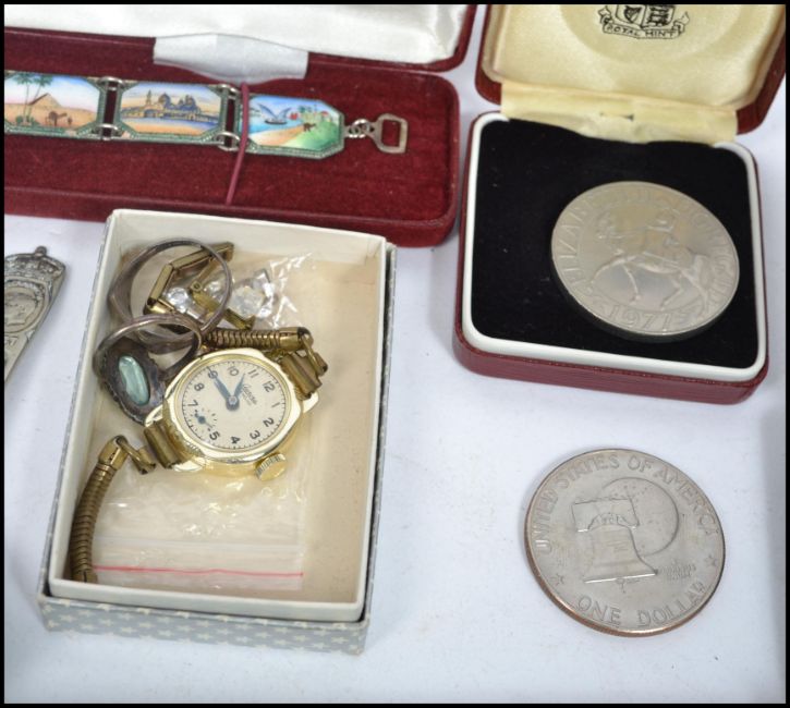A good collection of vintage 20th century costume jewellery to include various brooches, micro-mosaic, marcasite, cameo etc., silver rings, pair of gold cameo earrings, various other earrings, enamel bracelet, etc. Please see images.