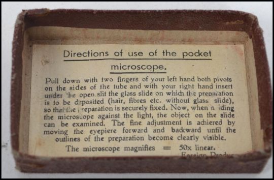 A vintage 20th century field brass miniature microscope in box along with a boxed scientific measuring glass. Tallest measures 7cm high.