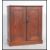 A Victorian pitch pine school cupboard having twin doors with chamfered edge fielded panels inset centre. Opening to reveal shelved interior. Set with flared top above. Measures: 98cm high x 86cm wide x 38cm deep.