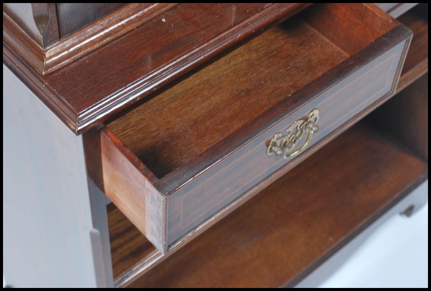 A 20th century mahogany Regency revival library bookcase cabinet. The base with drawers and cupboards having astragal glazed bookcase above. Dismantles into 2 pieces for ease of movement. Measures: 180cm high x 76cm wide x 30cm deep.