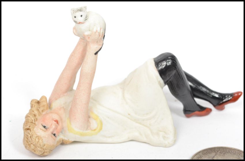 A ladies contemporary bone bangle together with a pocket ball clock, ceramic figurine and a bracelet etc ( see images ). Highest measures 8 cm.