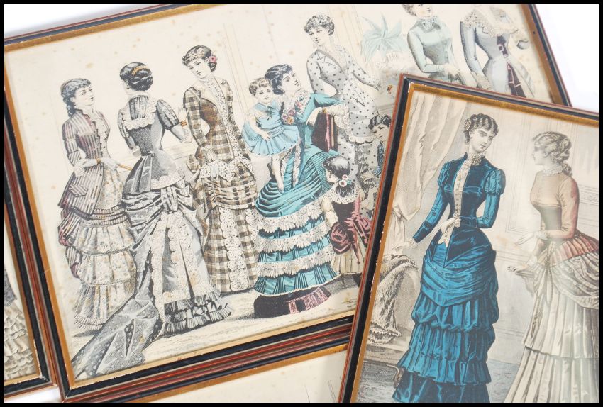 A series of vintage French La Belle Epoque framed and glazed prints depicting French ladies in dress.