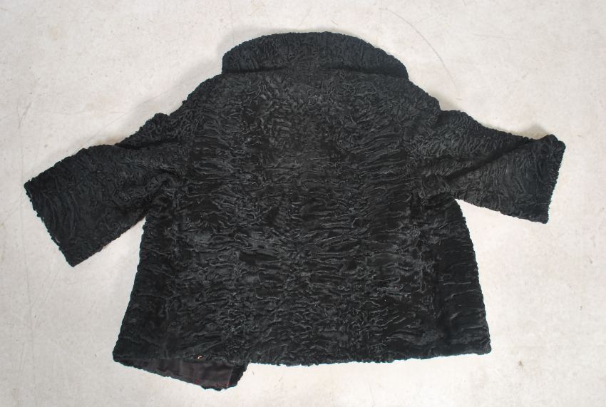 A vintage mid century Persian lamb 3/4 length fur coat by The Weald Furriers with makers label to the interior.