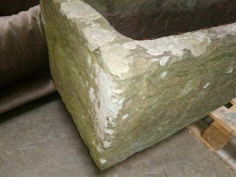 A large antique 19th century long 7ft natural stone trough of rectangular shaped form being hewn hand carved being well weathered and coming from a private estate within the Bristol locality. Measures 30cms high x 214cms long x 42cms deep