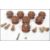 A set of eight Victorian mahogany tiger stripe turned wood chest of drawer knobs having mother of pearl inset panels.