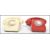 Two vintage mid century retro ring dial telephones in red and beige colourways with phones atop.