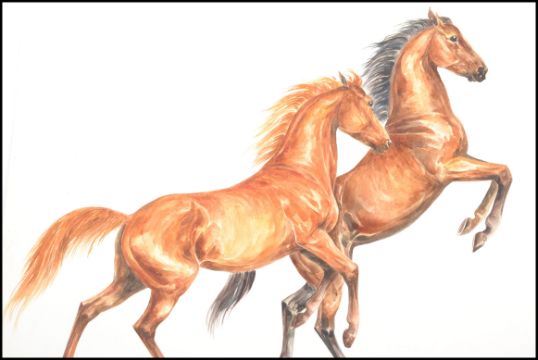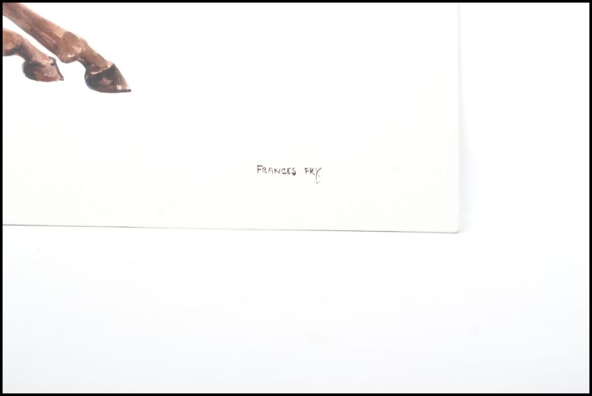 FRANCES FRY (20th Century British) - watercolour paintings / studies of horses: two rearing and a chestnut mare rearing with both being signed to the corner. Largest measures 59.5 cm x 52 cm.