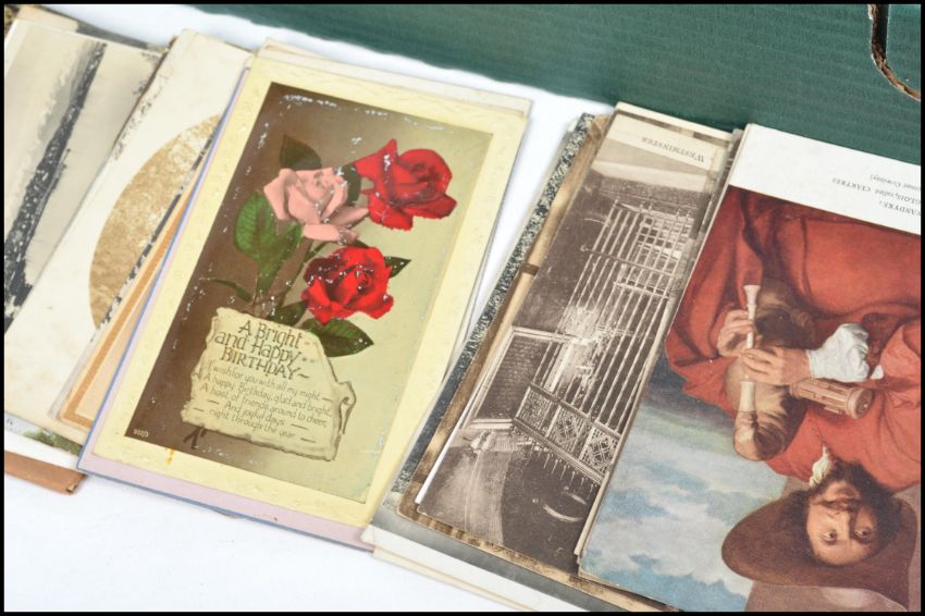 A shoe box containing a collection of approximately 600 - 700 postcards dating from the early 20th century