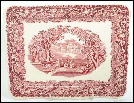 A vintage 20th century Masons ' Vista ' red transfer printed Ironstone cheese dish the cover and dish both being in excellent condition, stamped to base. Measures 11 cm high, 19 cm wide and 23 cm deep.