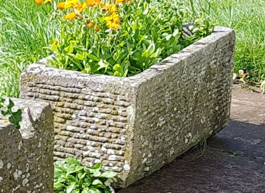 An antique 19th century deep natural stone trough of rectangular shaped form being hewn hand carved and with an arched interior. Well weathered and coming from a private estate within the Bristol locality. Measures 38cms high x 80cms long x 42 cms deep