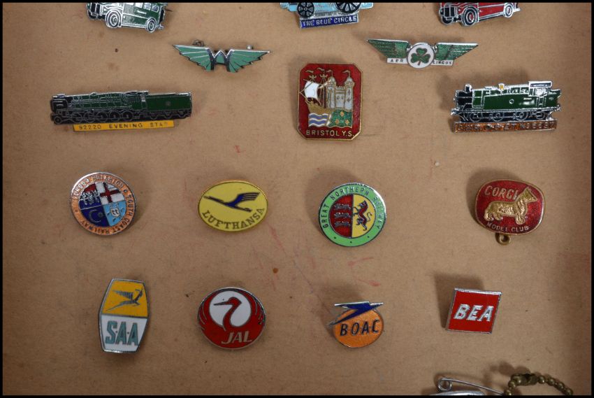 A collection of 20th century enamel badges relating to transport to include railway, shipping, flight etc. Please see images.