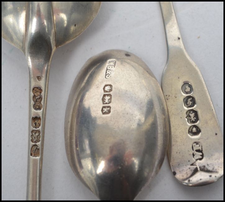 A good group of silver items to include a hallmarked silver pepperette, silver wine label, a pair of Mappin and Webb grape scissors, various silver spoons etc. Please see images. Highest measures 5.5 cm.