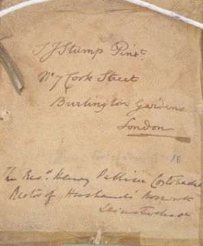 A 19th century portrait miniature painting on ivory plaque depicting a young gentleman. The painting with notation to verso possibly Rev Henry Palliser Costabacke however only partially legible. Set within oval gilt mount and velvet frame. Frame measures 14cms x 12cms