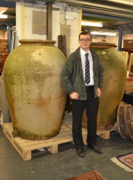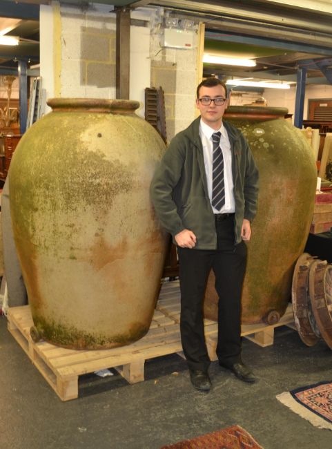 NOTE: consigned from a local property where they have been used as architectural garden features since the mid 1960's. The vendor's father worked at a Bristol metal work factory, where it is believed these contained Zinc. Upon their release from the factory they were brought home, and pulled into place by the families Morris Minor. There they have remained until they were consigned to auction. The final photographs show an original Doulton & Co of Lambeth advertisement for this style of stoneware pot.