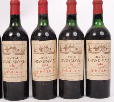 A quantity of 7x vintage 1962 bottles of French Grand Cru Classe Chateau Grand Mayne red wine from the Saint-Émilion region. Bottle size 750ml. All bottles sealed.