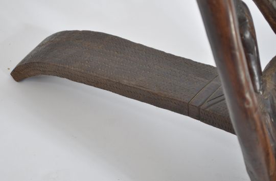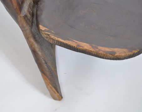 A late 19th century / early  20th century hardwood African tribal Congo birthing chair of two part construction having a panel seat with pierced decoration depicting animals and plants. 85cm tall.