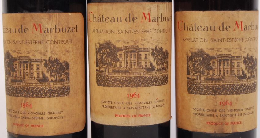 Three bottles of vintage 1964 French Chateau de Marbuzet red wine. Bottle size 750ml. All bottles sealed.