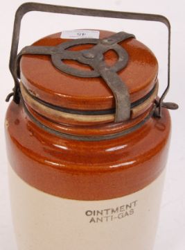 An original WWII Second World War Home Guard issue Mason's Stoneware Ointment ' Anti-Gas ' Canister. With metal handle & lid. Measures approx 26cm tall.