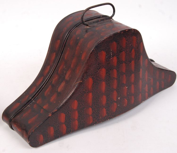 A good early 20th century Royal Navy / Naval uniform bi-corn hat. Fabulous original condition with gilded brocade ends, and decorative border. Size noted as 6 7/8. Comes within its original tin hat box, neatly noted as belonging to ' WJ Gibbs, RN ', and still with its original postage label, listing the owner as living in Portsmouth. Also comes with a pair of regulation dress gloves, in white. Rare.  Note; once belonging to Lieutenant Commader William John 'Jack' Gibbs (1910-2004). Consigned directly from the family, who have supplied a list of his service history to accompany the items. His service included time about HMS Hood (famous for being sunk by the Bismarck), HMS Furious, HMS Bermuda and many other vessels.