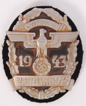 A 20th century Nazi German Third Reich SA National Socialist Motor Corps ' Oberdonau ' shooting award badge.   NOTE: From a private collection of German militaria comprising of both genuine and replica items. Where possible we have stated ‘original’ or ‘replica’ but buyers are strictly reminded to satisfy themselves prior to bidding as to authenticity / condition irrespective of the description.