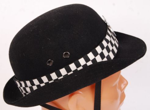 An original late 20th century 1997 Liverpool Merseyside Police Force female officers uniform helmet/ hat. Measures approx 55cm in diameter. By C.W Headdress Limited.