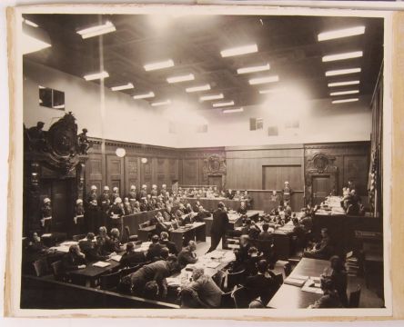 A collection of 9x 8x10" black & white press photos of the Nuremberg Trails from 1945 to 1946 featuring courtroom scenes, testimonies & high ranking Nazi government officials & prosecutors from allied countries to include; Robert .H. Jackson, Chief United States Prosecutor making his opening & closing argument, Hermann Goering, President of The Reichstag, Ernst Kaltenbrunner Director Of The Reich Main Security Office & the highest ranking SS member to face trail & others. Some possibly unseen.
