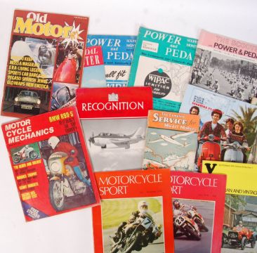 A collection of vintage motor & aviation related magazine to include; 1950's Recognition Journal magazines, Old Motor magazine, The Scooter with Power & Pedal,  Motorcycle Sport magazine & others.