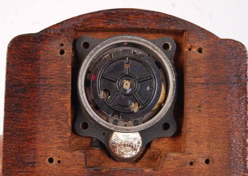 A scarce original WWII Second World War German Messerschmitt aeroplane cockpit clock. Made by Bordhuhr, with the rear movement plate stamped with serial number J27-558A and 655223. Luminous elements to the dial, with decorative hands. Mounted into a slip-in oak frame and base. Rare. Working order.